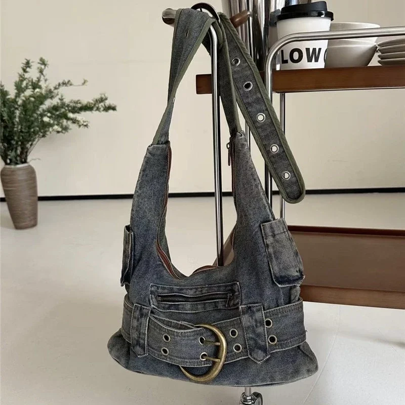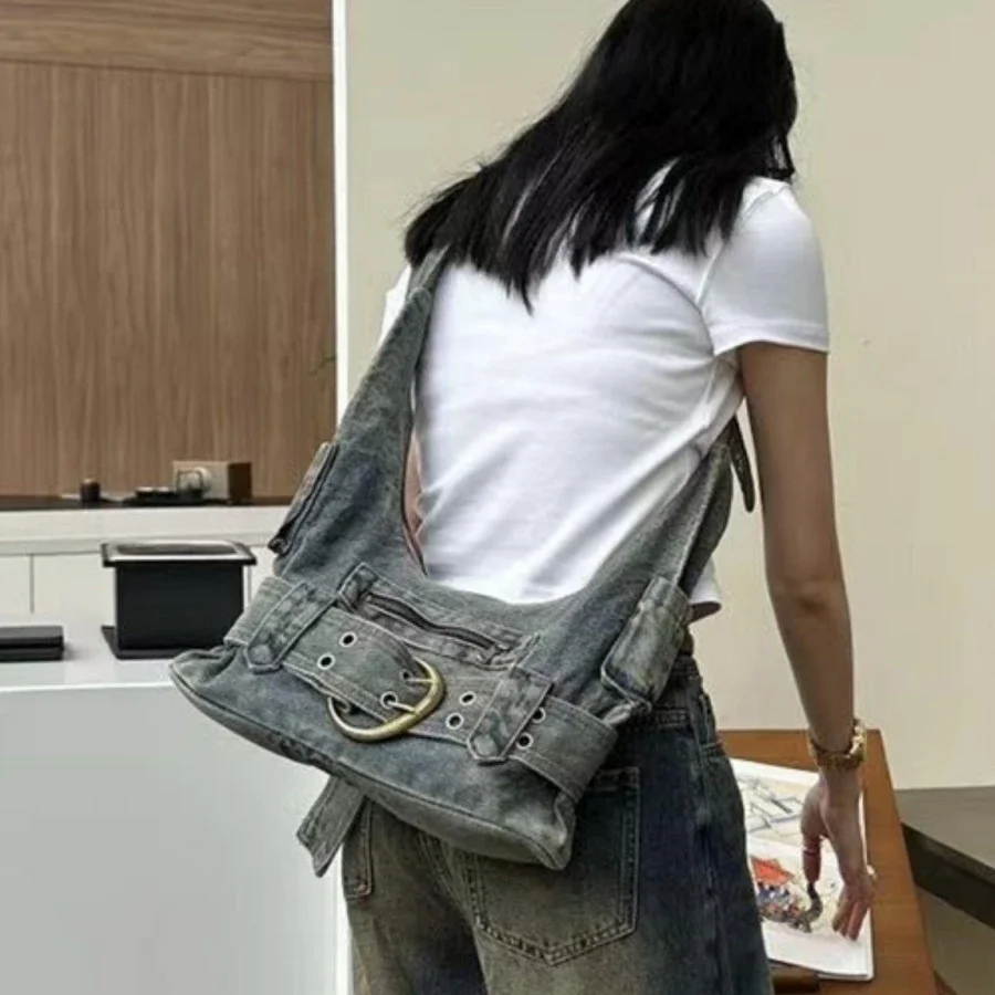Vintage denim Y2k women shoulder
