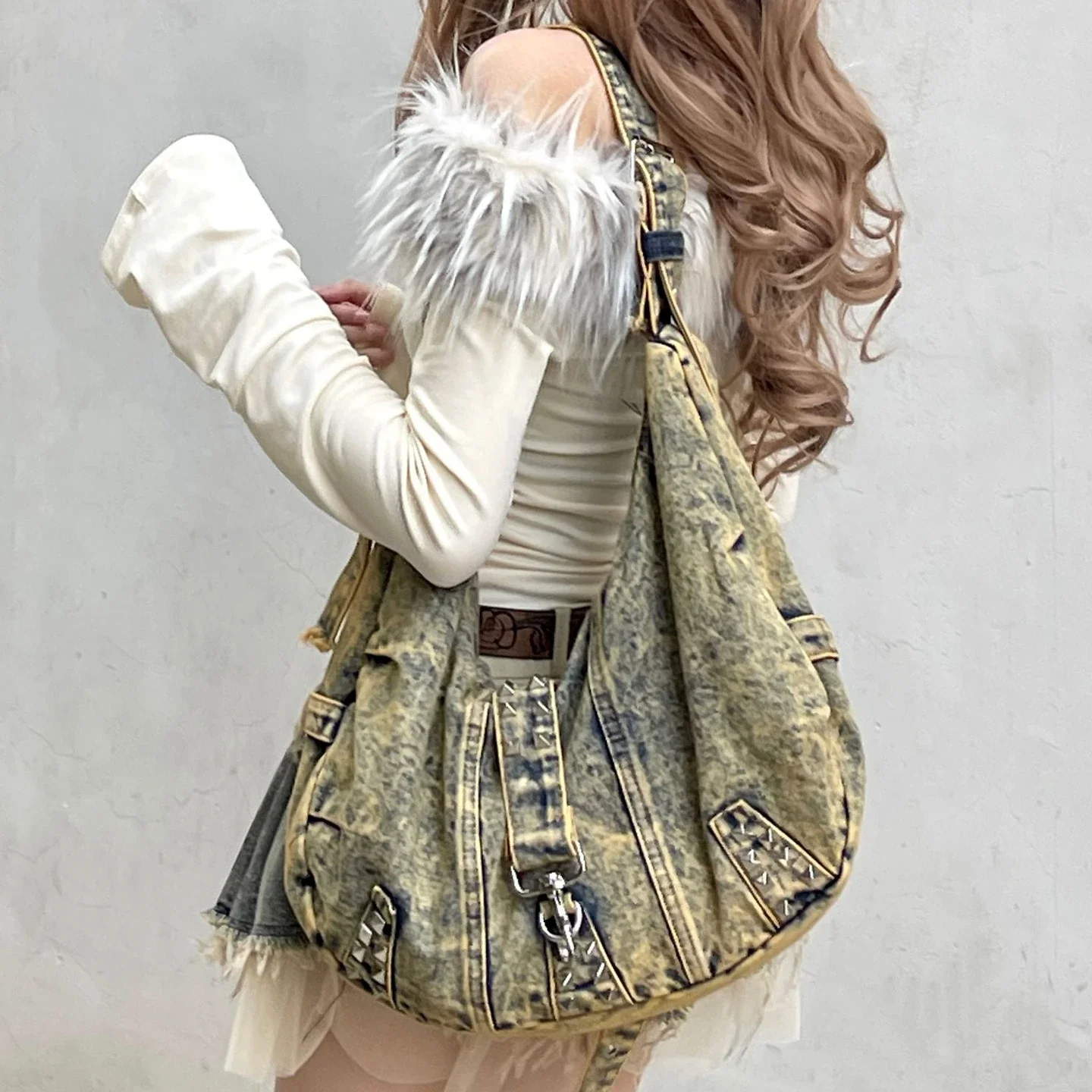 Be the first to review “Washed Denim rivet Shoulder Bag” Cancel reply